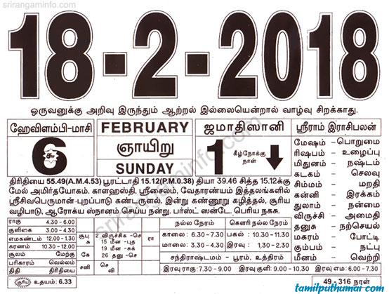தமிழ் நாட்காட்டி 2018-02-18 ஞாயிற்றுக் கிழமை