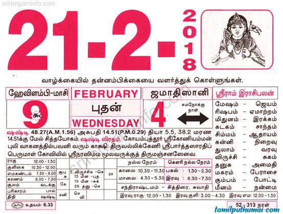 தமிழ் நாட்காட்டி 2018-02-21 புதன் கிழமை