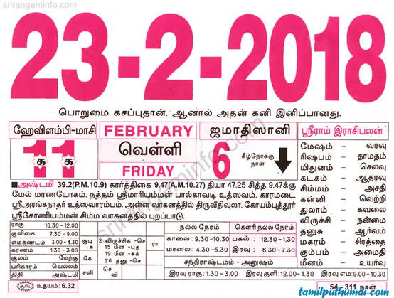 - tamil daily calendar 2018-02-23