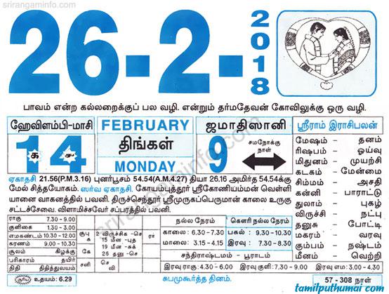 தமிழ் நாட்காட்டி 2018-02-26 திங்கட் கிழமை