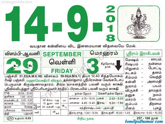 தமிழ் நாட்காட்டி 2018-09-14 வெள்ளிக்கிழமை