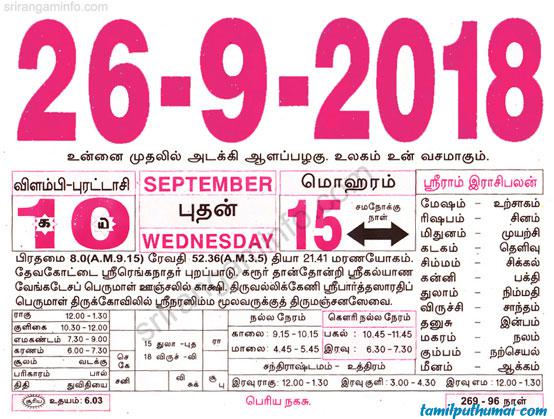 தமிழ் நாட்காட்டி 2018-09-26 புதன் கிழமை