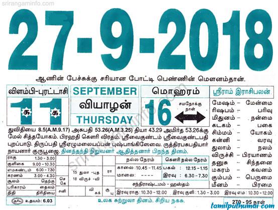 தமிழ் நாட்காட்டி 2018-09-27 வியாழக் கிழமை
