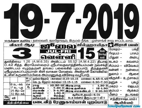 - tamil daily calendar 2019-07-19