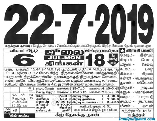 - tamil daily calendar 2019-07-22