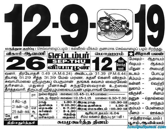 தமிழ் நாட்காட்டி 2019-09-12 வியாழக் கிழமை