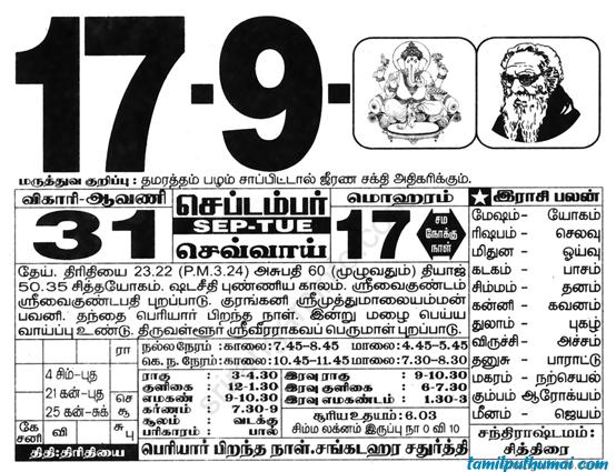 தமிழ் நாட்காட்டி 2019-09-17 செவ்வாய்க் கிழமை