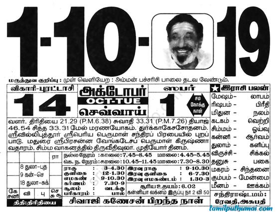 - tamil daily calendar 2019-10-01