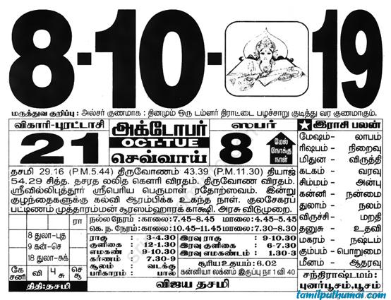 - tamil daily calendar 2019-10-08