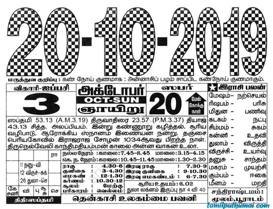 - tamil daily calendar 2019-10-20