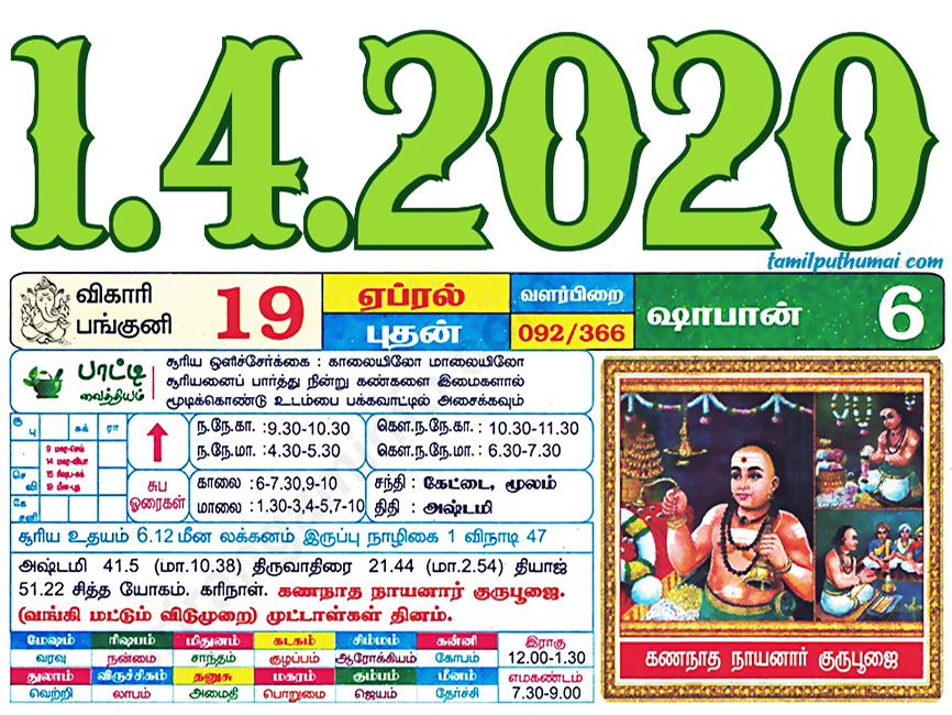 - tamil daily calendar 2020-04-01