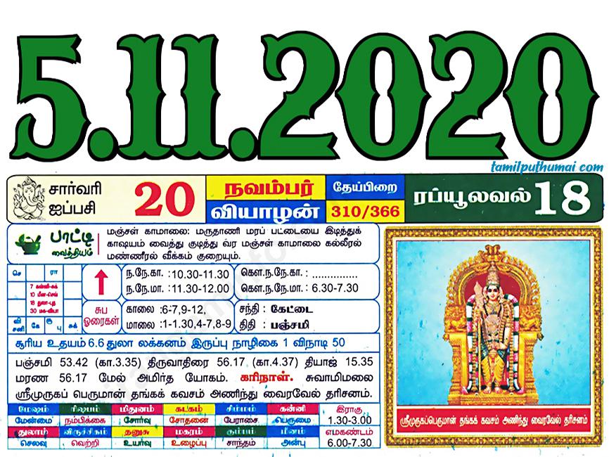 தமிழ் நாட்காட்டி 2020-11-05 வியாழக் கிழமை