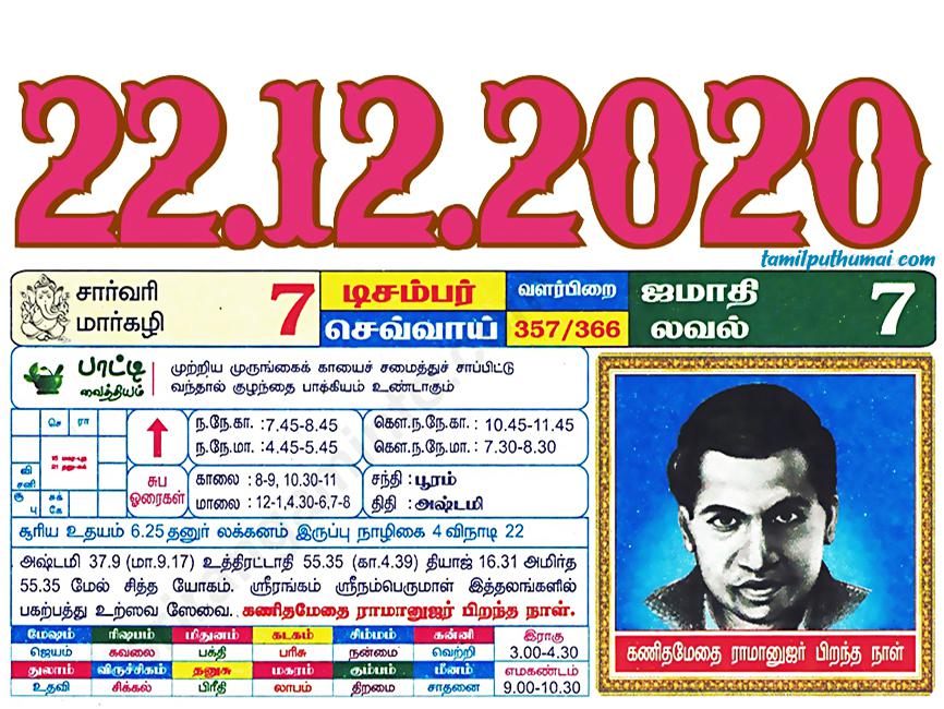 தமிழ் நாட்காட்டி 2020-12-22 செவ்வாய்க் கிழமை