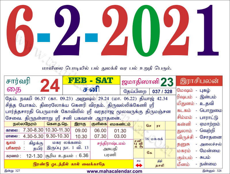 - tamil daily calendar 2021-02-06
