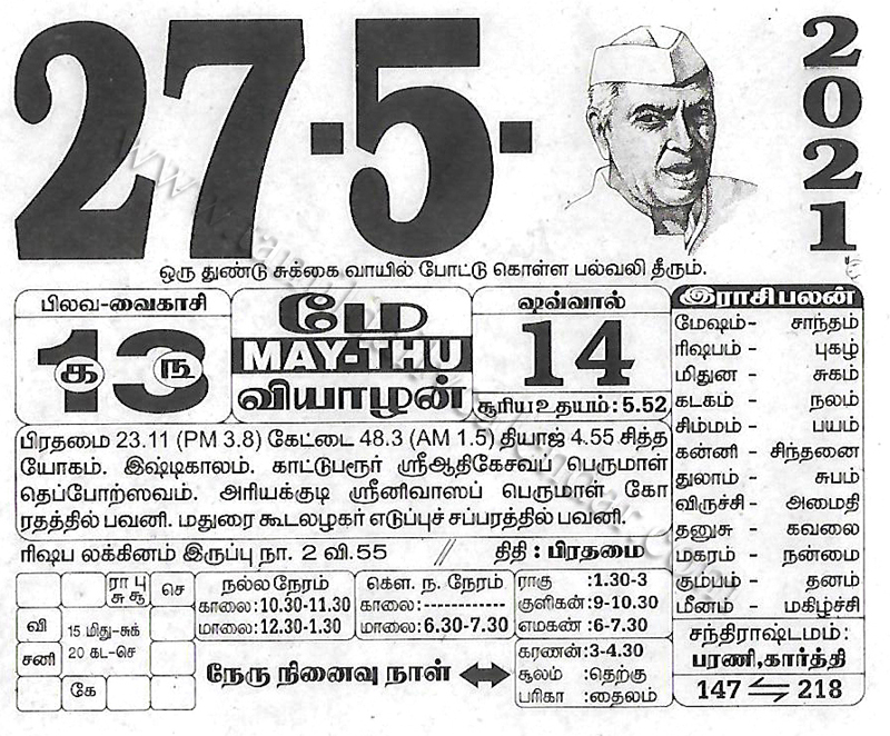 - tamil daily calendar 2021-05-27