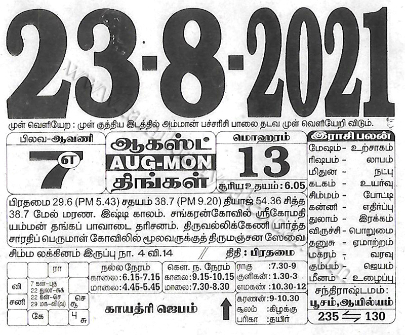 - tamil daily calendar 2021-08-23