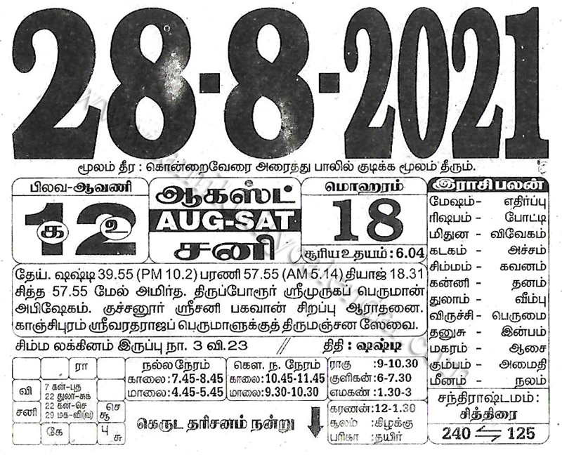 - tamil daily calendar 2021-08-28