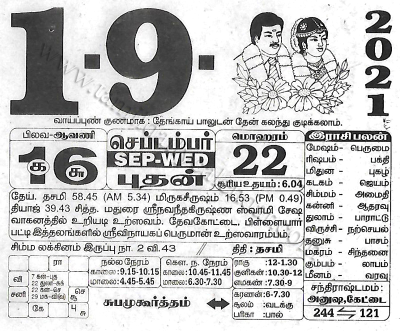 தமிழ் நாட்காட்டி 2021-09-01 புதன் கிழமை