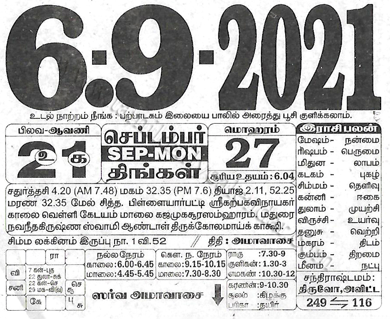 - tamil daily calendar 2021-09-06