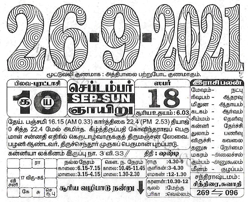 தமிழ் நாட்காட்டி 2021-09-26 ஞாயிற்றுக் கிழமை