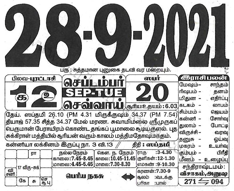 - tamil daily calendar 2021-09-28