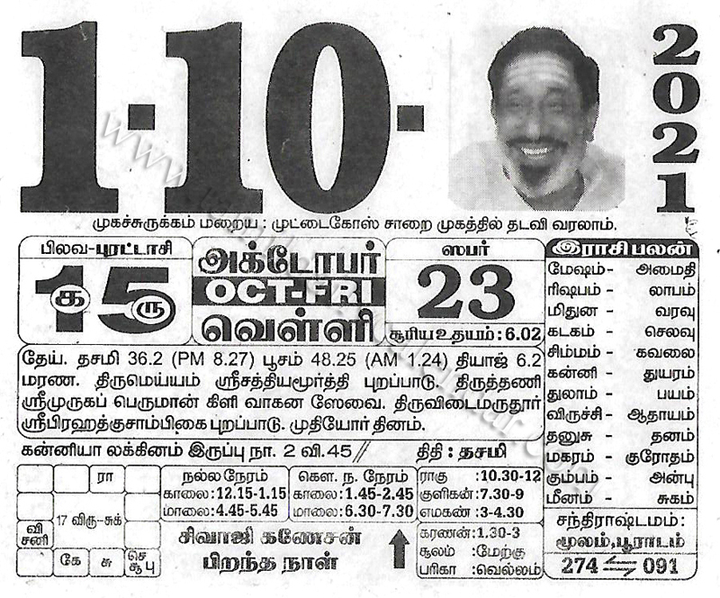 தமிழ் நாட்காட்டி 2021-10-01 வெள்ளிக்கிழமை