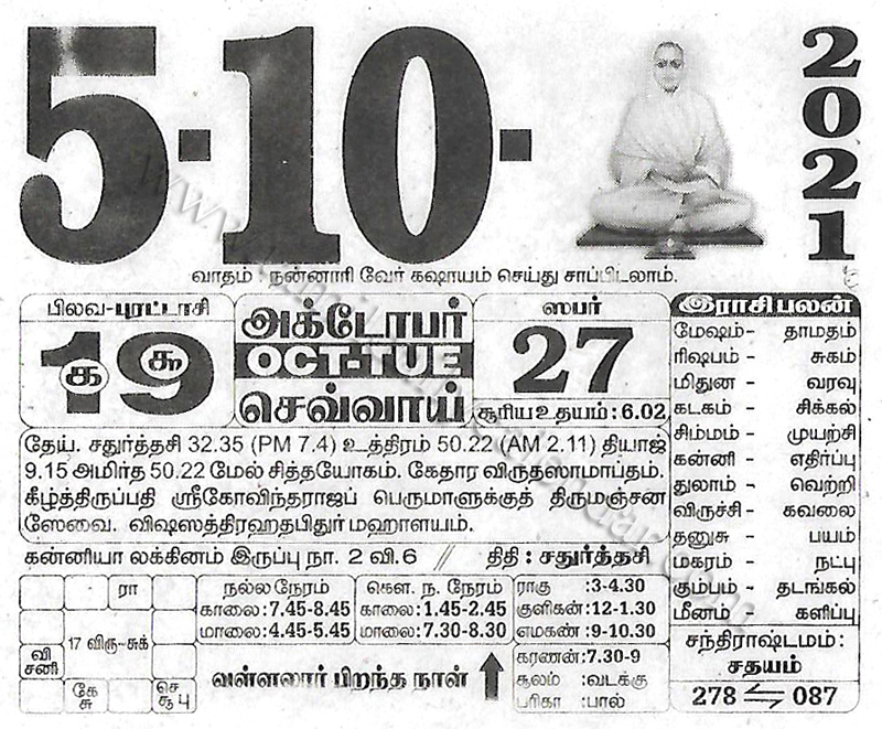 தமிழ் நாட்காட்டி 2021-10-05 செவ்வாய்க் கிழமை