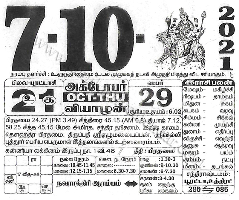 - tamil daily calendar 2021-10-07