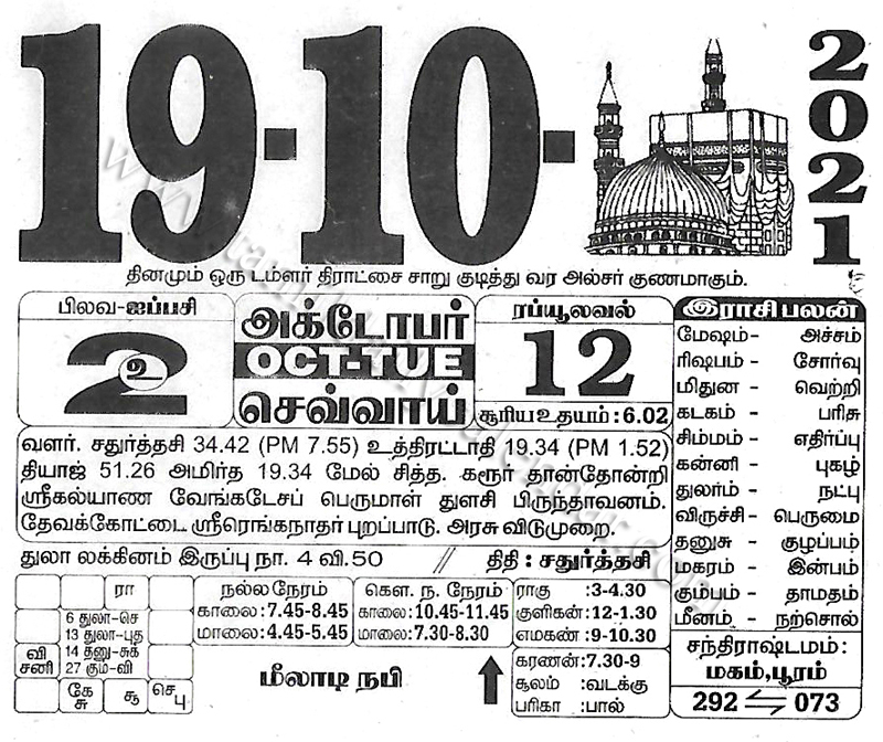 தமிழ் நாட்காட்டி 2021-10-19 செவ்வாய்க் கிழமை