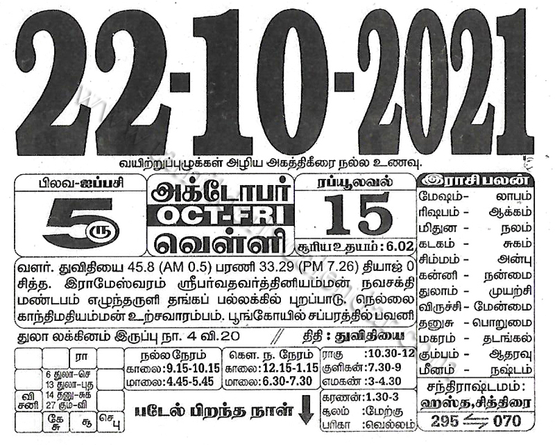 - tamil daily calendar 2021-10-22