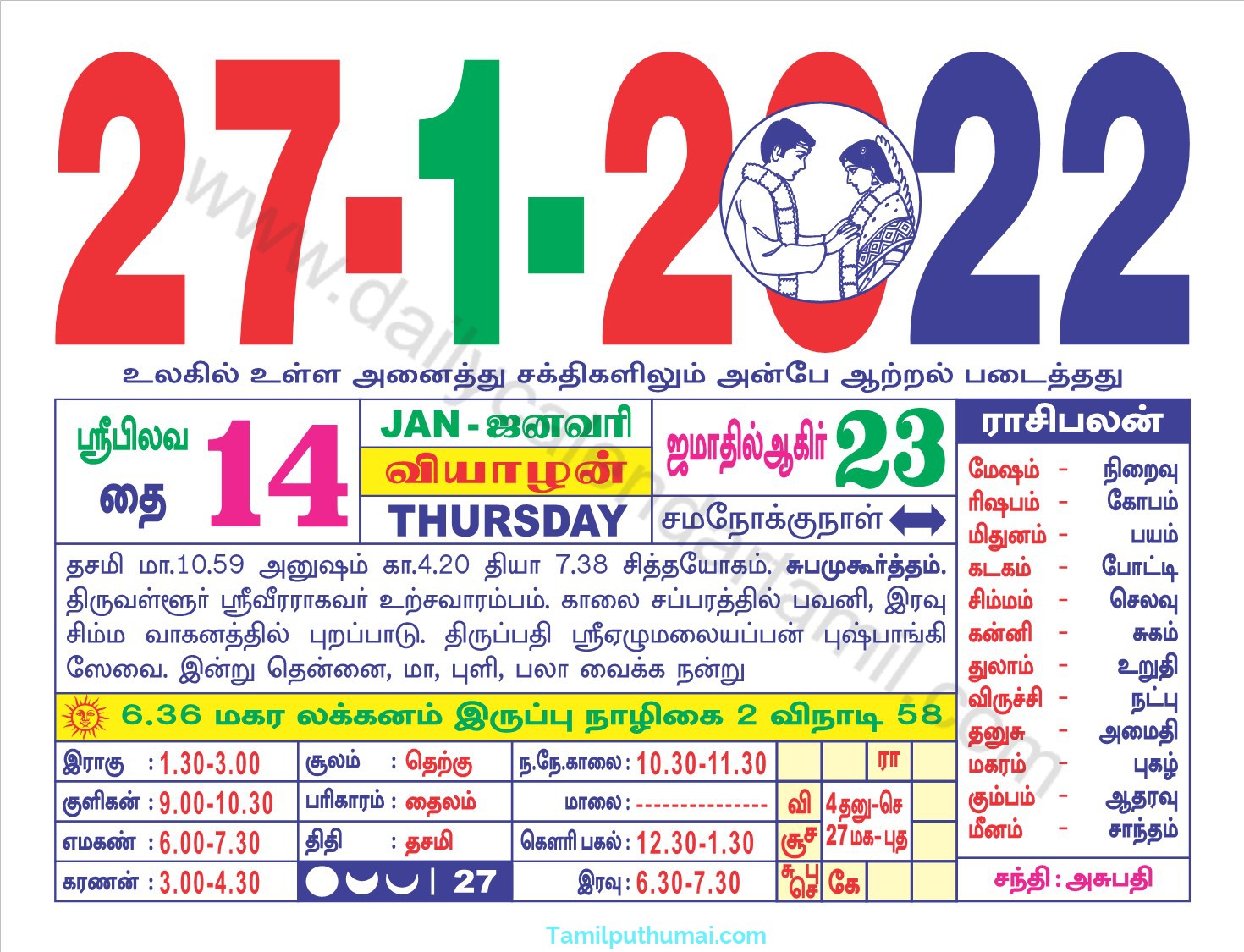 தமிழ் நாட்காட்டி 2022-01-27 வியாழக் கிழமை