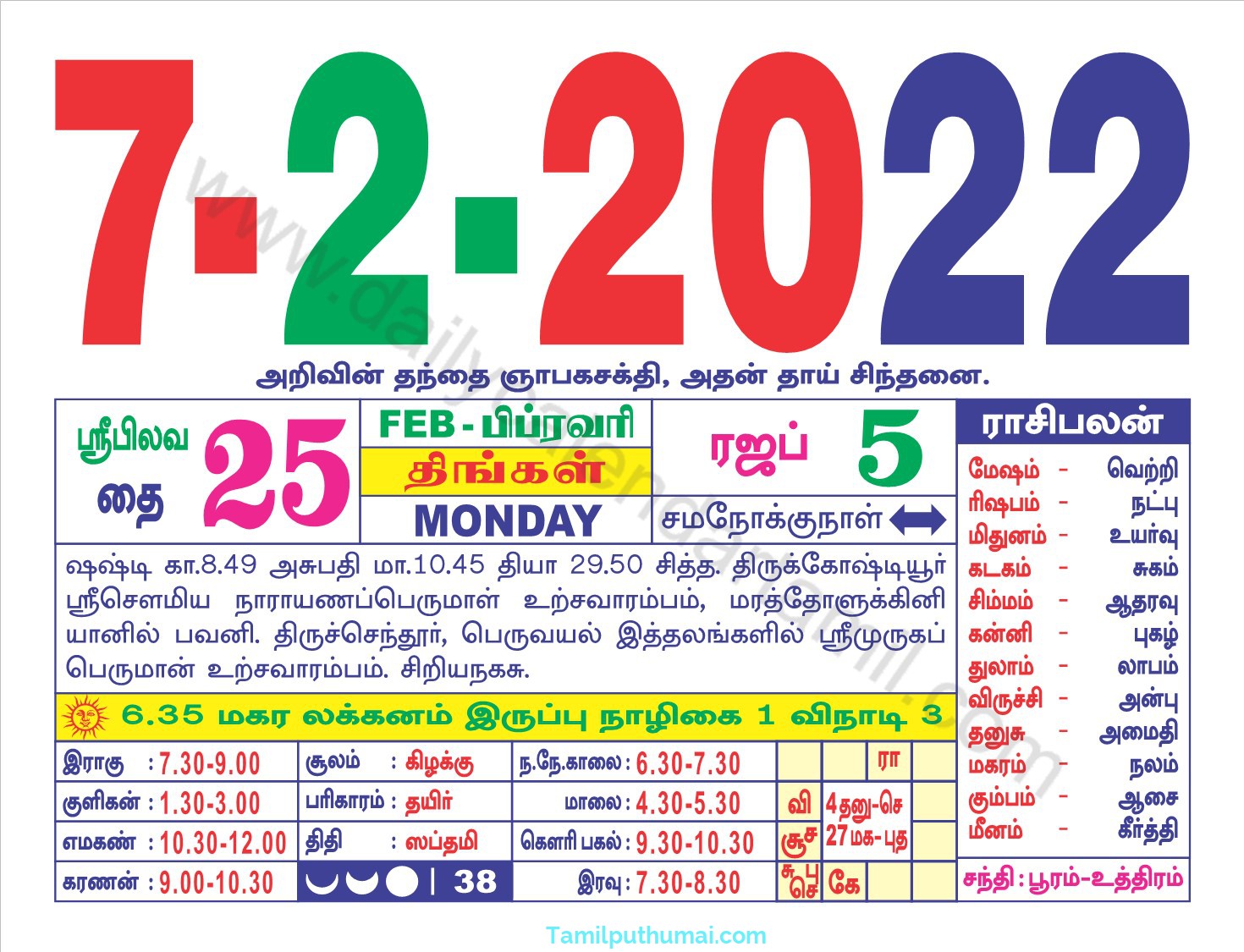 தமிழ் நாட்காட்டி 2022-02-07 திங்கட் கிழமை