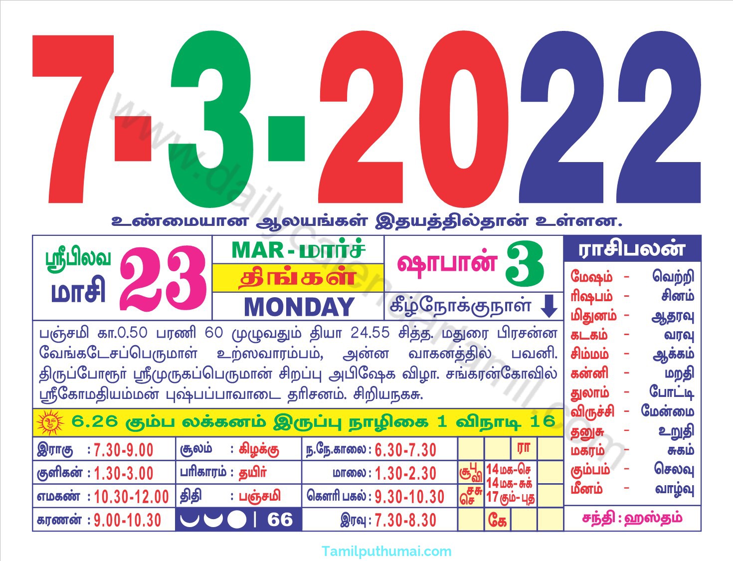 தமிழ் நாட்காட்டி 2022-03-07 திங்கட் கிழமை