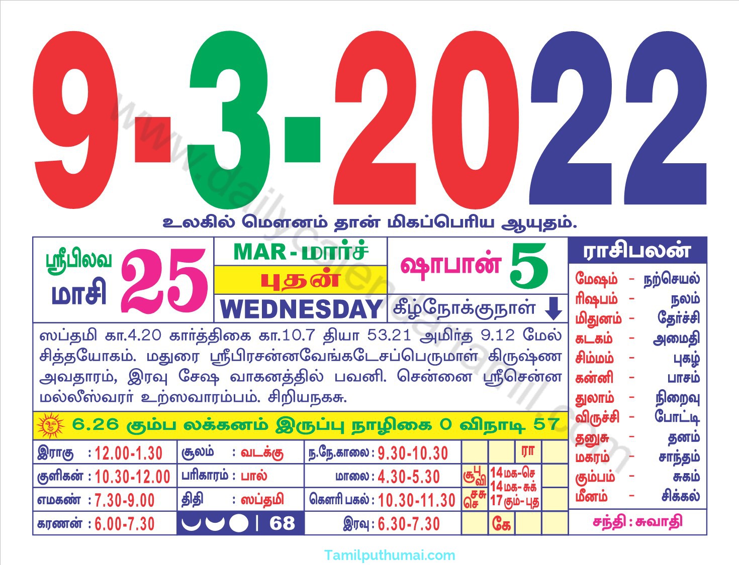 தமிழ் நாட்காட்டி 2022-03-09 புதன் கிழமை