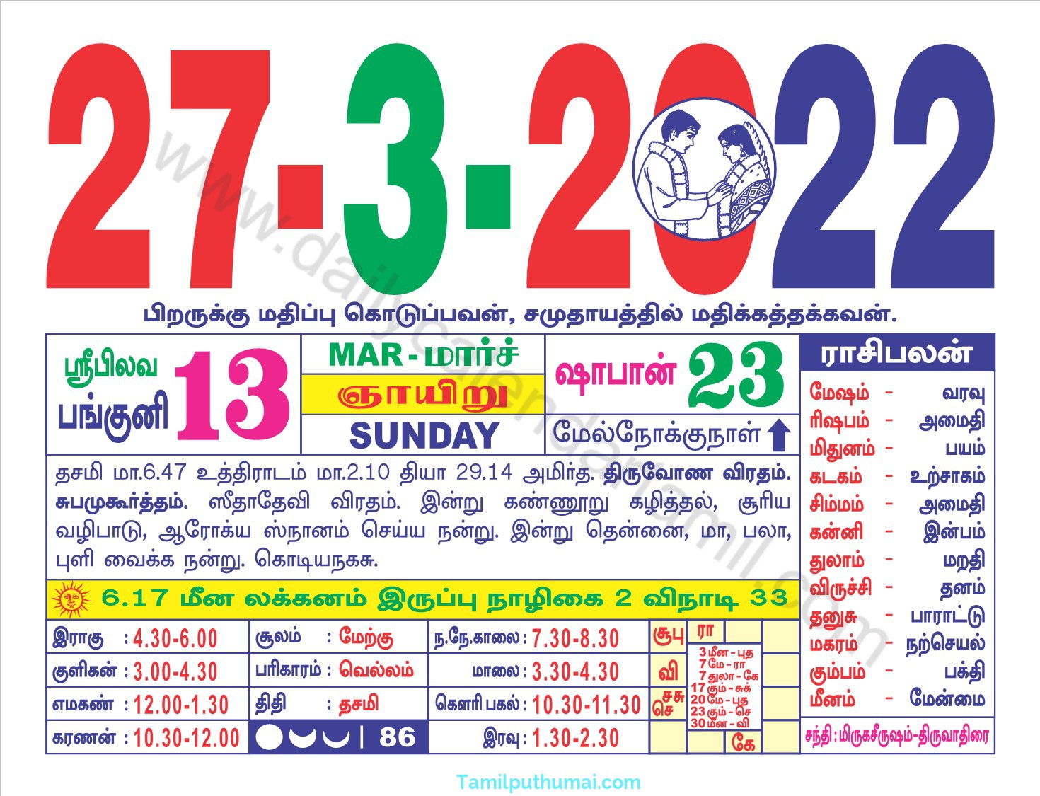 தமிழ் நாட்காட்டி 2022-03-27 ஞாயிற்றுக் கிழமை
