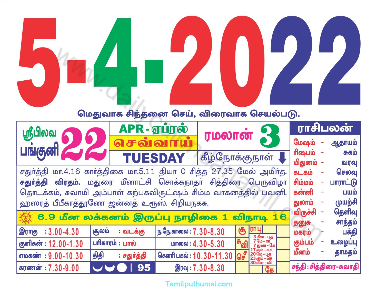 தமிழ் நாட்காட்டி 2022-04-05 செவ்வாய்க் கிழமை