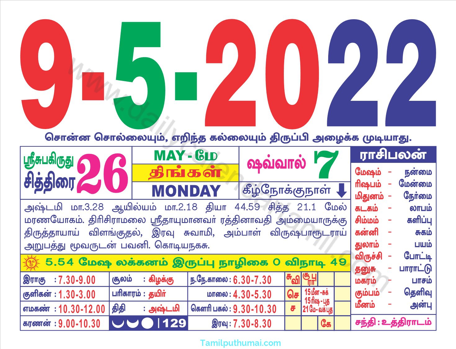 தமிழ் நாட்காட்டி 2022-05-09 திங்கட் கிழமை