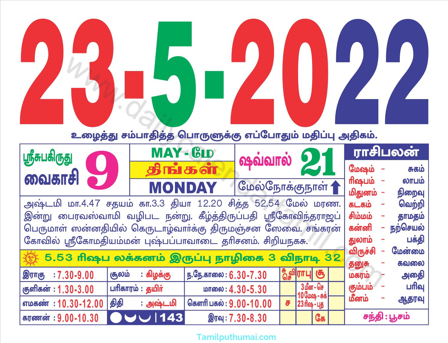 தமிழ் நாட்காட்டி 2022-05-23 திங்கட் கிழமை