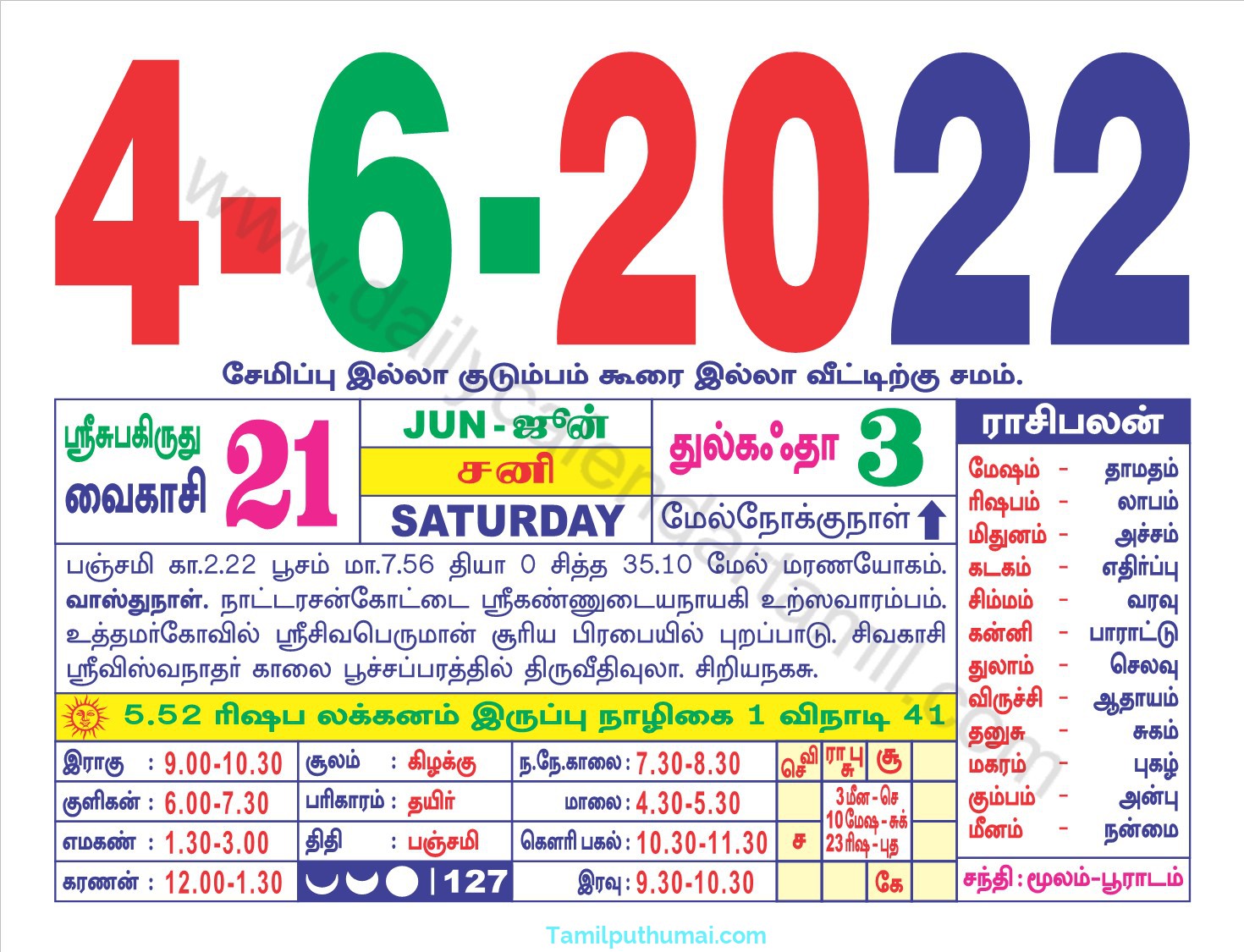 தமிழ் நாட்காட்டி 2022-06-04 சனிக் கிழமை