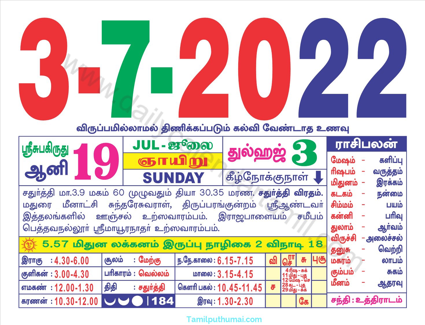 தமிழ் நாட்காட்டி 2022-07-03 ஞாயிற்றுக் கிழமை