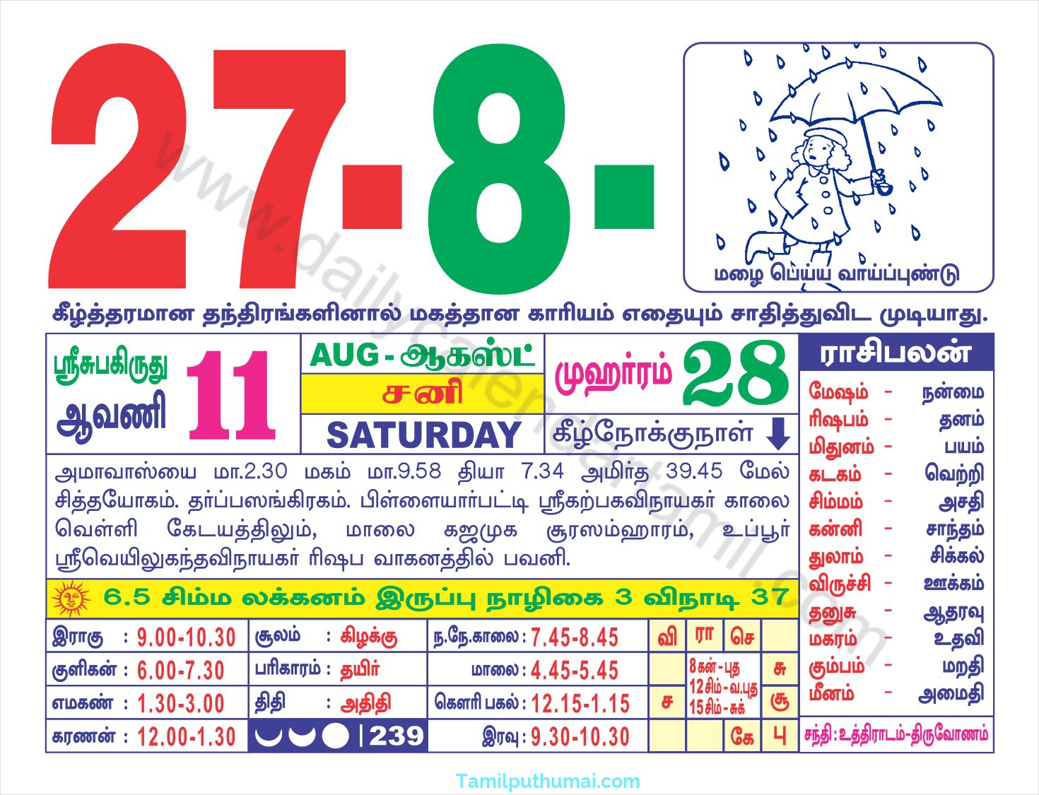தமிழ் நாட்காட்டி 2022-08-27 சனிக் கிழமை