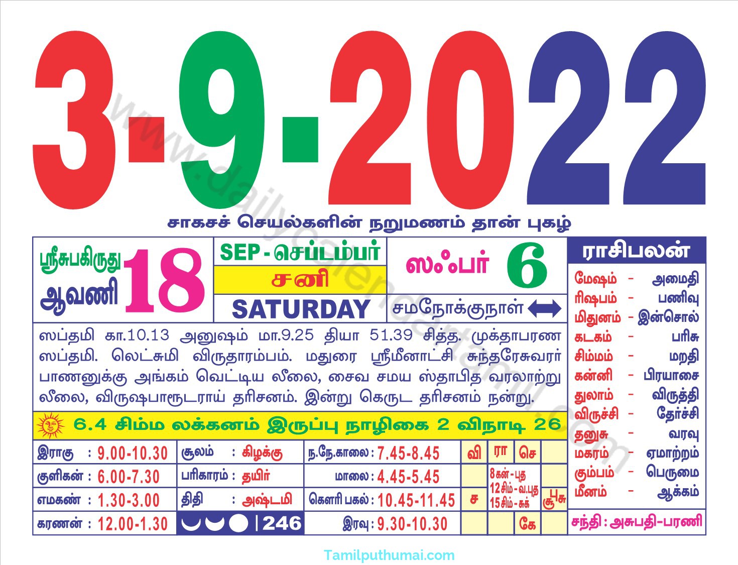தமிழ் நாட்காட்டி 2022-09-03 சனிக் கிழமை