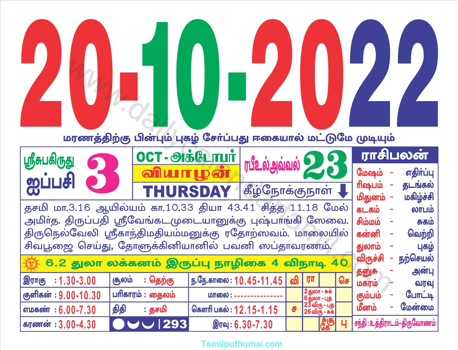 தமிழ் நாட்காட்டி 2022-10-20 வியாழக் கிழமை