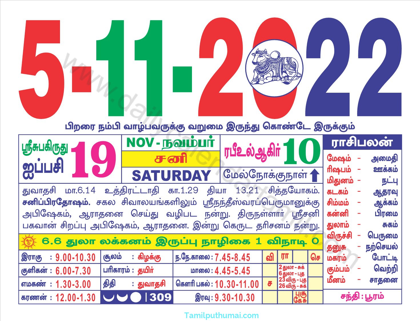 தமிழ் நாட்காட்டி 2022-11-05 சனிக் கிழமை