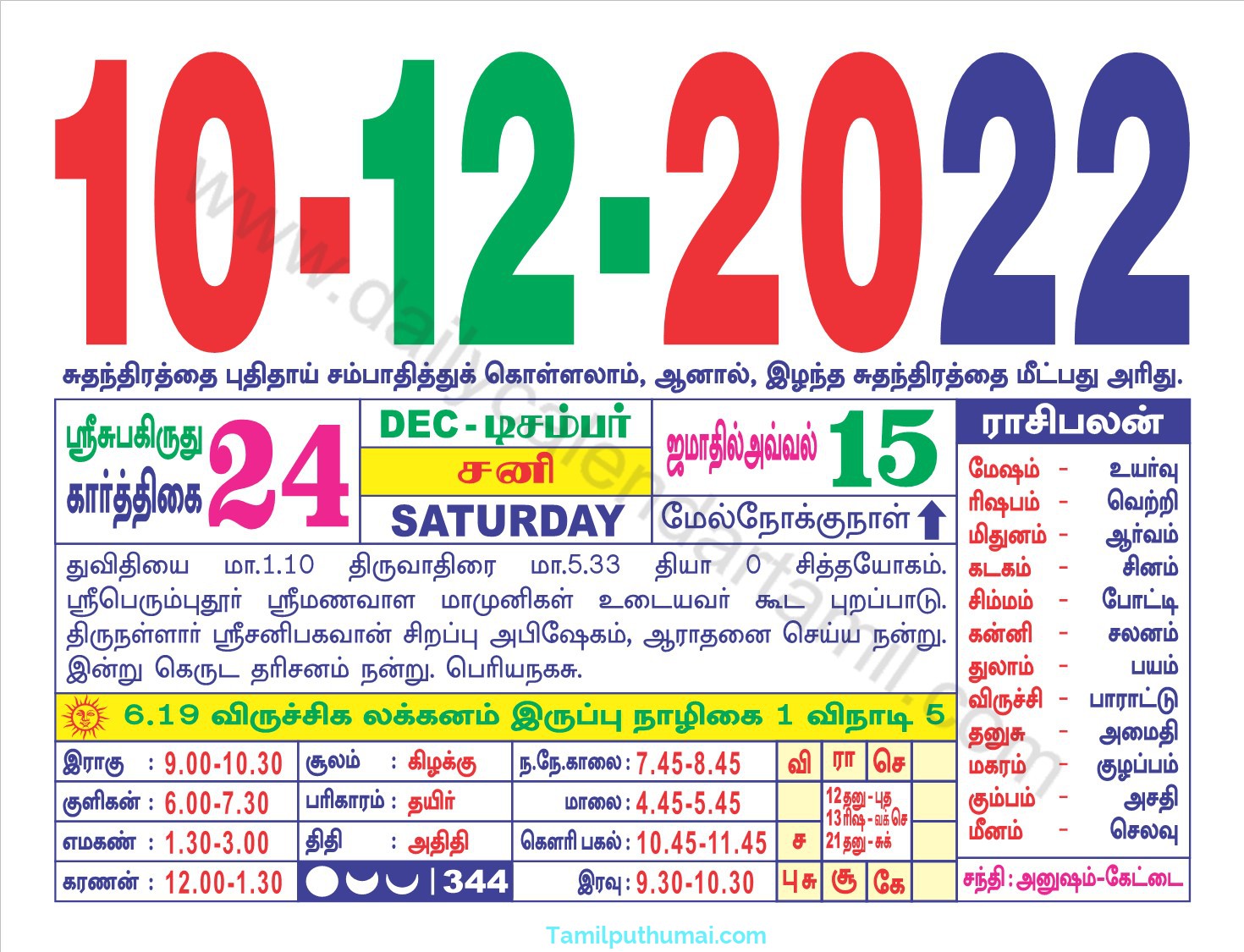 தமிழ் நாட்காட்டி 2022-12-10 சனிக் கிழமை
