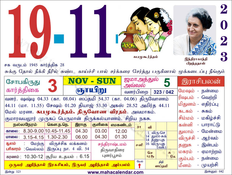 தமிழ் நாட்காட்டி 2023-11-19 ஞாயிற்றுக் கிழமை