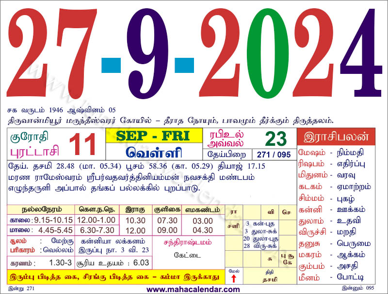 - tamil daily calendar 2024-09-27