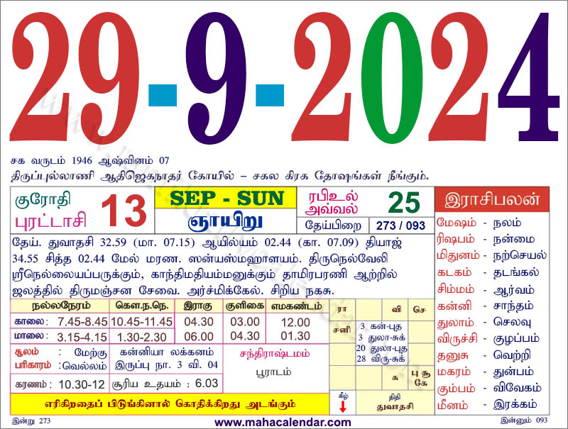 தமிழ் நாட்காட்டி 2024-09-29 ஞாயிற்றுக் கிழமை