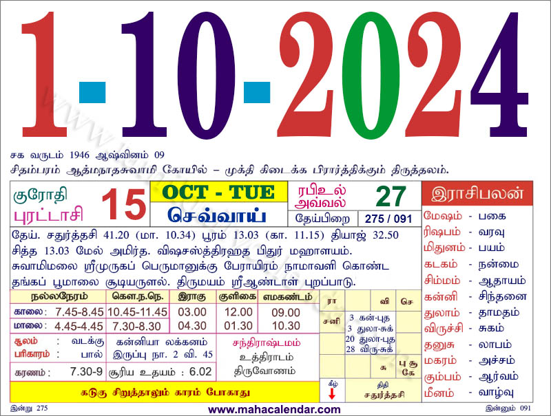 தமிழ் நாட்காட்டி 2024-10-01 செவ்வாய்க் கிழமை