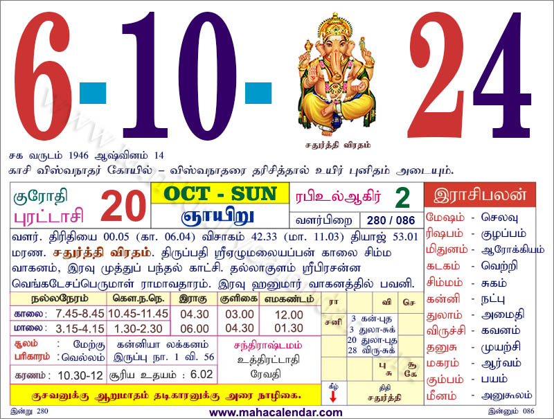 தமிழ் நாட்காட்டி 2024-10-06 ஞாயிற்றுக் கிழமை